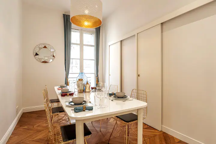 The apartment can easily welcome a large family or three/four couples for an exquisite stay in formal french style. Each covering a whole floor of the historic Hotel de la Madeleine this apartment will ensure guests' stays in Bordeaux are both comfortable and memorable.